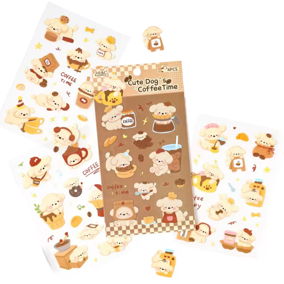 4pcs Cute Dog Coffee Time Sticker Sheets
